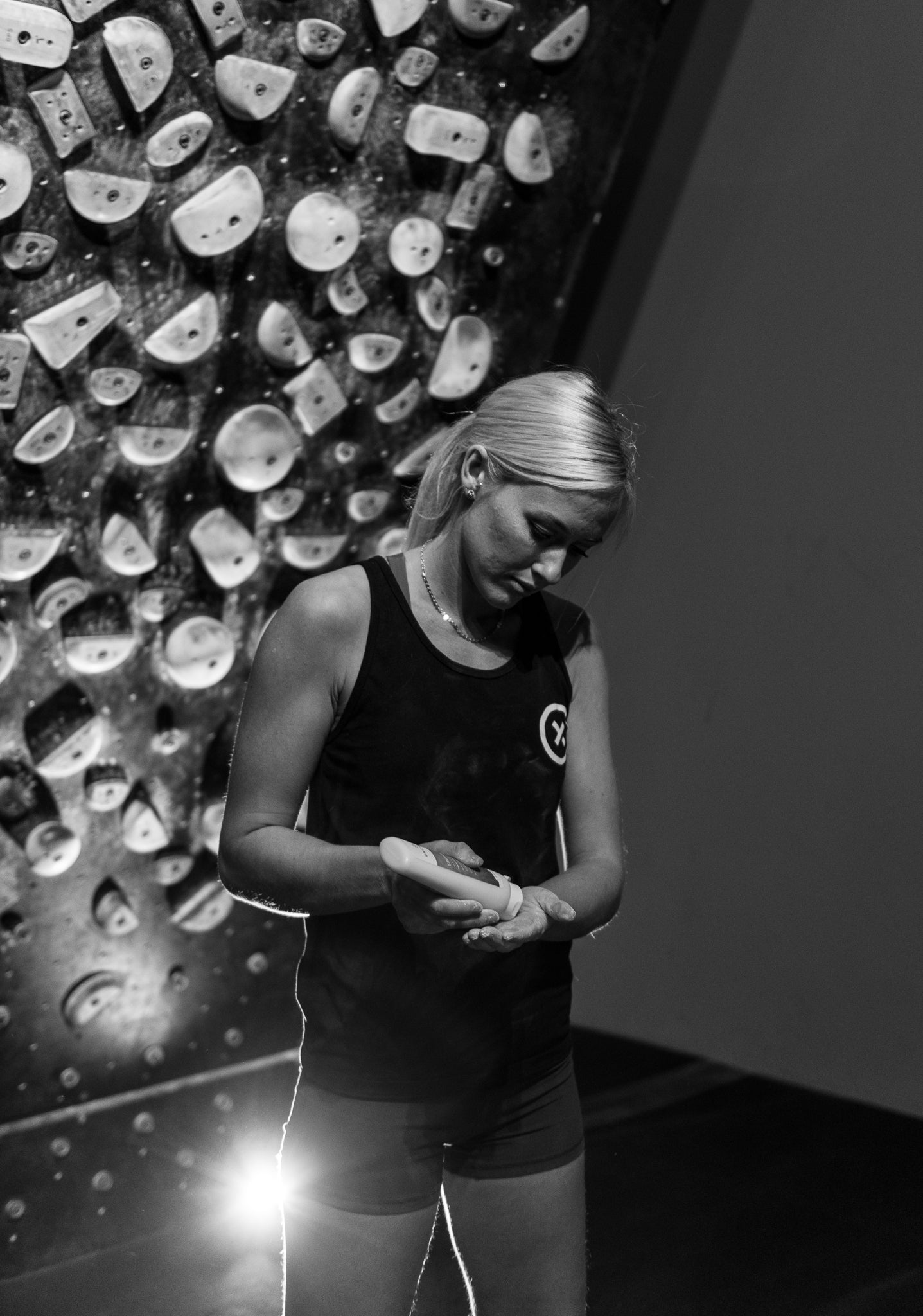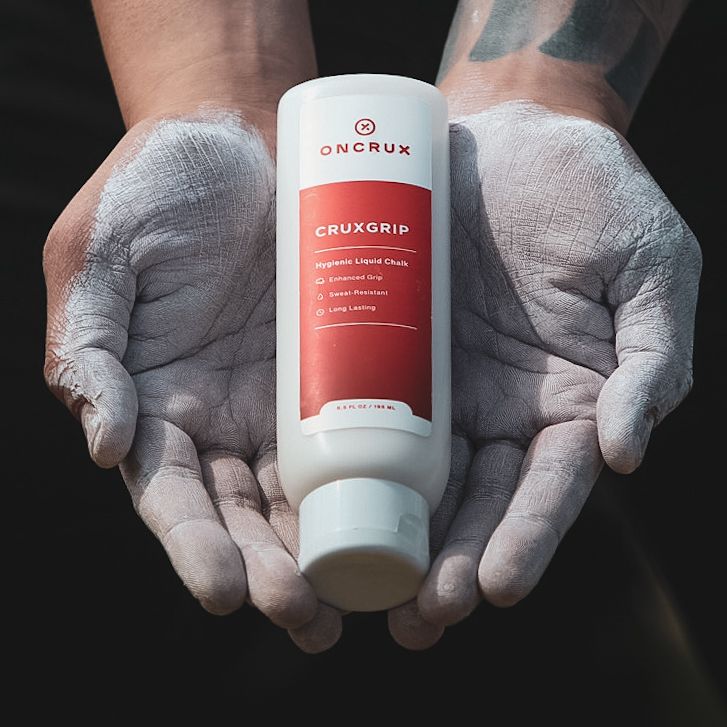 CRUXGRIP liquid chalk stays on your hands longer with minimal chalk transfer.